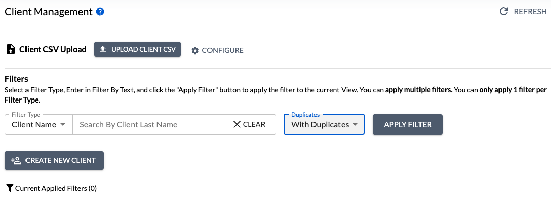 If duplicate Clients have been added, you can now filter to more easily manage correcting these duplicates.