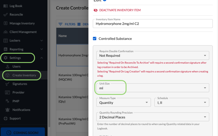 An admin can change the unit size(ml, bottle, tube etc) of a drug using the following steps.