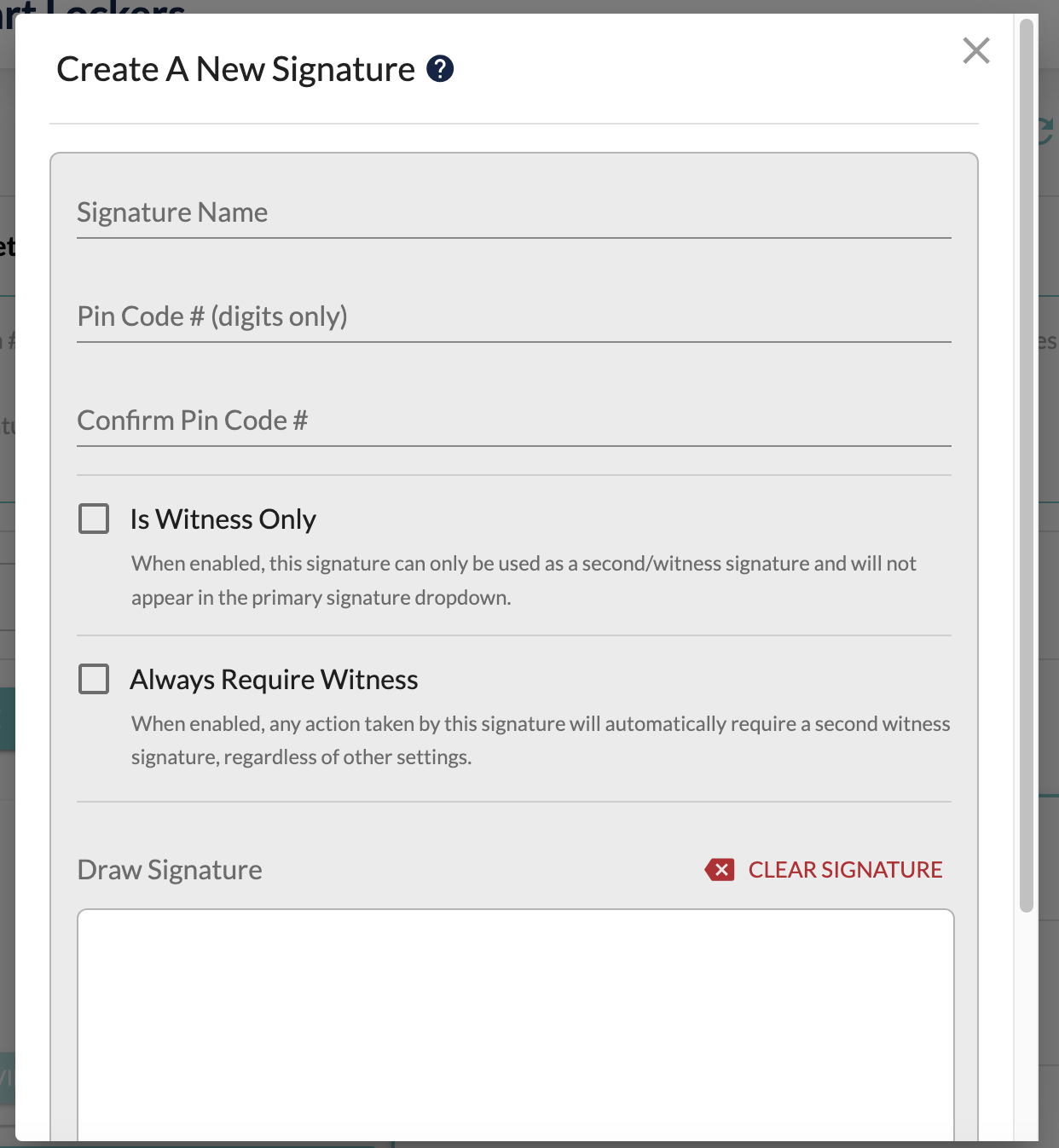 - Witness Only - the signature can only be used as a witness for a primary signature. They will not appear within the primary signature selection dropdown.